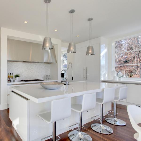 High Gloss White Flat Panel Lacquer New Design Cupboard With Kitchen Island Table